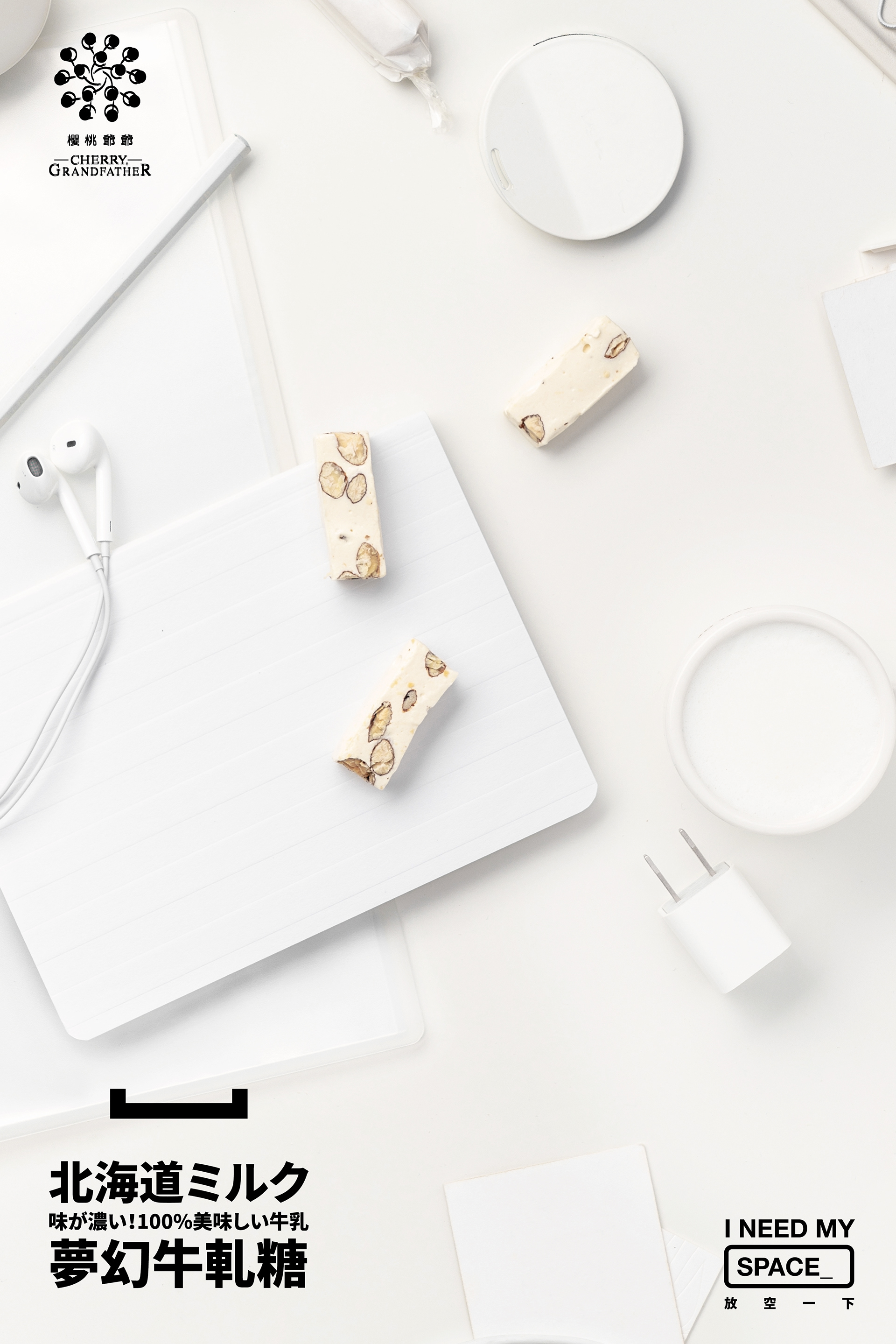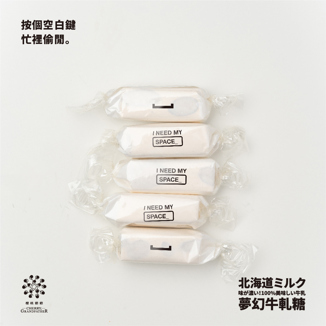 【北海道ミルク夢幻牛軋糖】是台灣牛軋糖專家「櫻桃爺爺」為來自北海道的夢幻特級乳原所量身打造的系列產品。