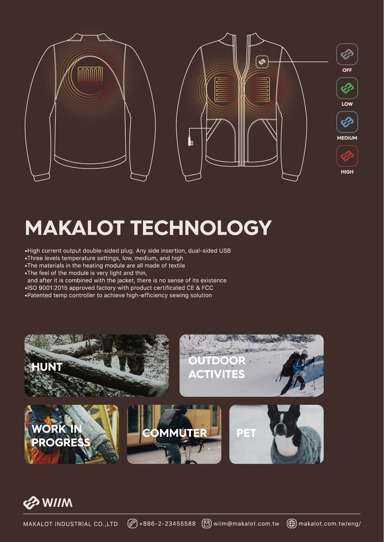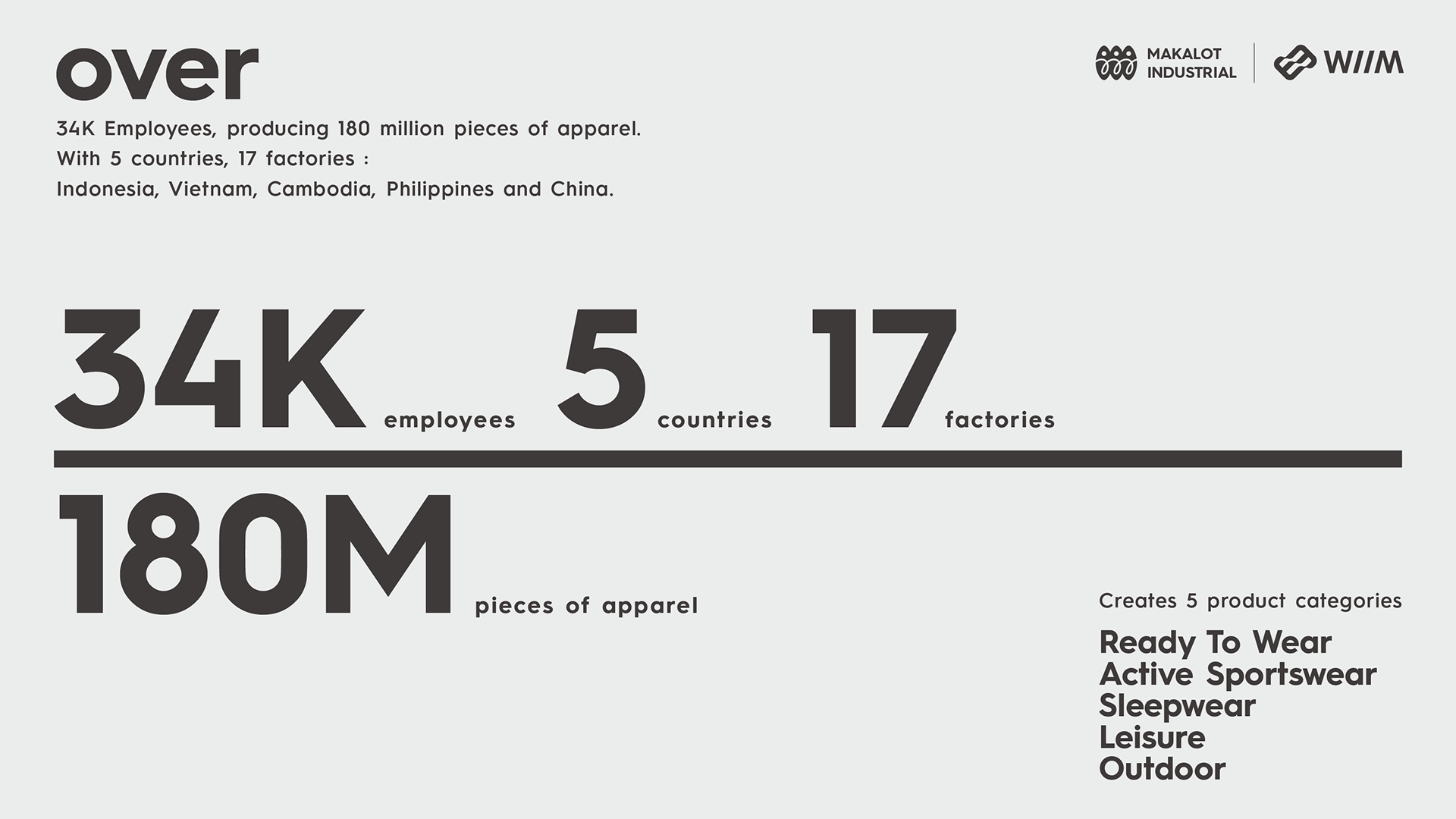 台灣紡織龍頭 Makalot聚陽實業(1477) OPEN INNOVATION TEAM推出的全新概念品牌WIIM,運用創新科技服務重新定義傳統紡織,提供運動健康管理、智冷/發熱產品等智慧型應用解決方案,為客戶提升產品價值整合紡織生態鏈。